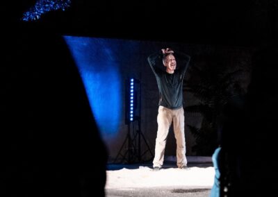 « J’ai le souvenir d’avoir déjà vu deux fois l’adaptation de ce texte, dont une avec Denis Lavant. Jamais deux sans trois, n’est-ce pas ? Et j’ai vraiment bien fait. Dès le début de la pièce, le spectateur est happé par le contraste entre la nudité du plateau et la fulgurance du comédien, Guillaume Tobo, qui envahit le plateau dès le premier mot. Ce n’est pas un texte simple pour un acteur ! Ici, pas de failles dans la transmission ni dans la réception. (…) Dans la pièce, il n’y a pas de forêt, il n’y a pas de cité. Il y a la nudité d’un lieu improbable et sans doute universel que le comédien remplit avec maestria. Le spectateur est à son comble théâtral. En tout cas, ce fut le cas pour moi ce soir-là. »